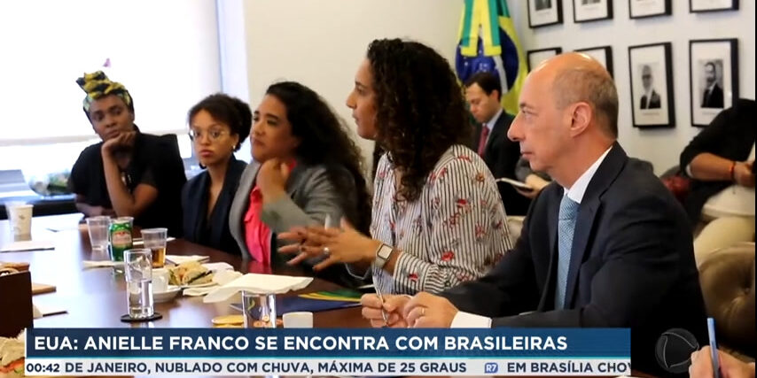 A ministra da Igualdade Racial, Anielle Franco, se encontrou com mulheres brasileiras durante uma visita em Nova York, nos EUA. Dentro do Consulado Americano, Anielle ouviu as mulheres, que são imigrantes e apresentaram os principais problemas da comunidade brasileira no país.
