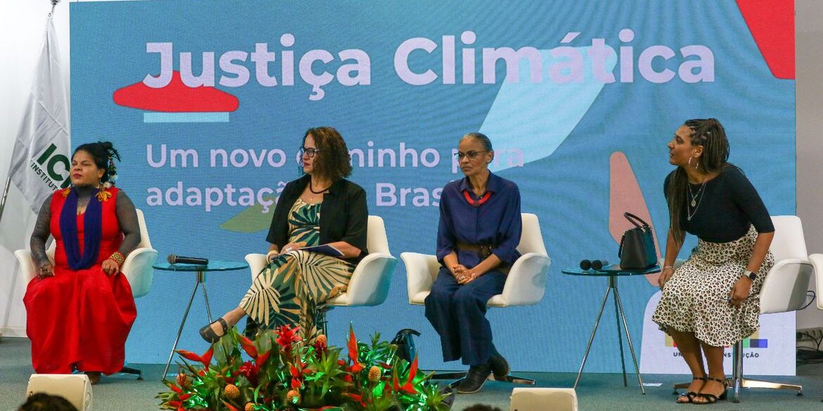 Quatro ministras participaram, nesta segunda-feira (4), da oficina Justiça Climática: Um Novo Caminho para a Adaptação no Brasil. A ministra do meio ambiente, Marina Silva, abriu o evento, do qual também participaram a ministra dos Povos Indígenas, Sônia Guajajara; a ministra da Igualdade Racial, Anielle Franco; e a ministra da Ciência, Tecnologia e Inovação, Luciana Santos. O tema da oficina, Justiça Climática, resume boa parte das medidas relacionadas ao meio ambiente que vêm sendo defendidas pelo Brasil.