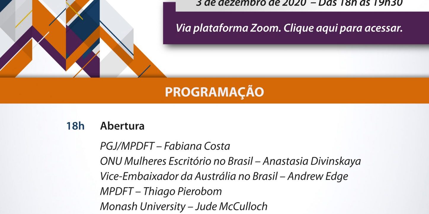 O Ministério Público do Distrito Federal e Territórios, em parceria com o Monash Gender and Family Violence Prevention Centre e a Faculdade de Justiça da QUT University, com o apoio da ONU Mulheres Escritório no Brasil e da Embaixada da Austrália no Brasil, convidam para o lançamento da coletânea “Reflexões sobre políticas de prevenção à violência baseada no gênero contra mulheres e meninas: debates no Brasil e na Austrália”