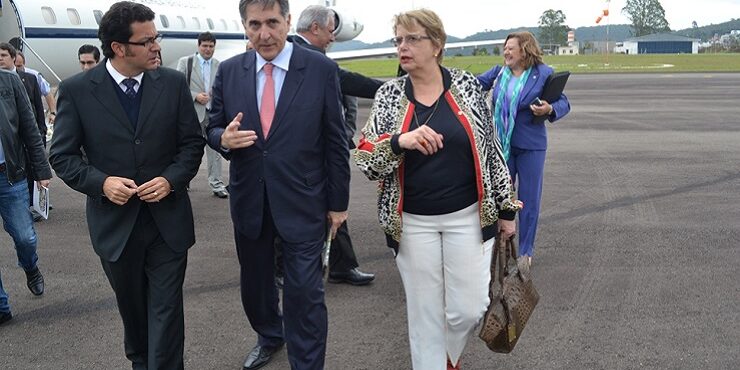 Antônio Jabour, Ministro Pimentel e a deputada Margarida Salomão na chegada a Juiz de Fora para o Encontro de Prefeitos e Prefeitas da Zona da Mata