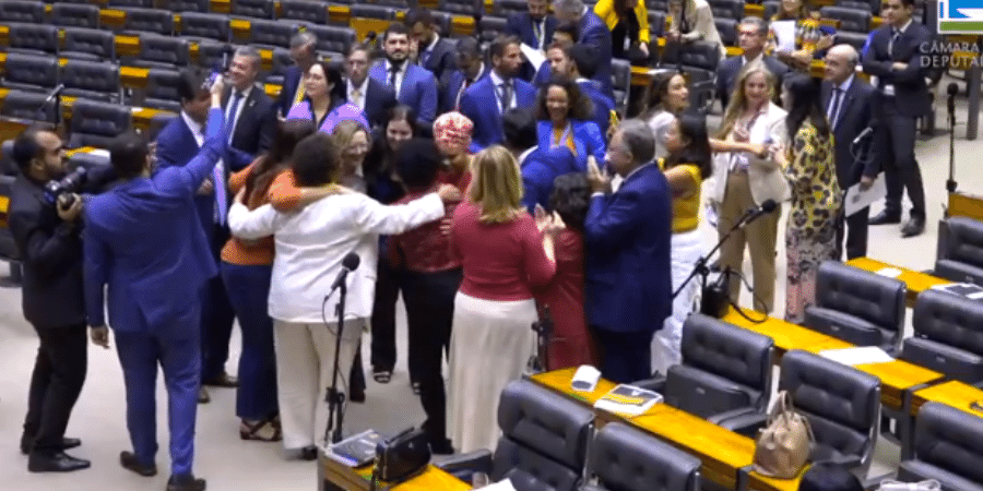 Deputadas comemoram aprovação do protocolo ?Não é Não? na Câmara Imagem: Reprodução/TV Câmara