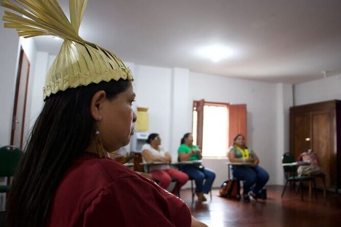 Mulheres indígenas de diversos territórios brasileiros participam de um encontro nacional, nesta terça-feira (23) e…
