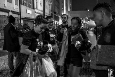Ana Paula se aproxima com timidez dos voluntários de uma ONG que está distribuindo doações para…