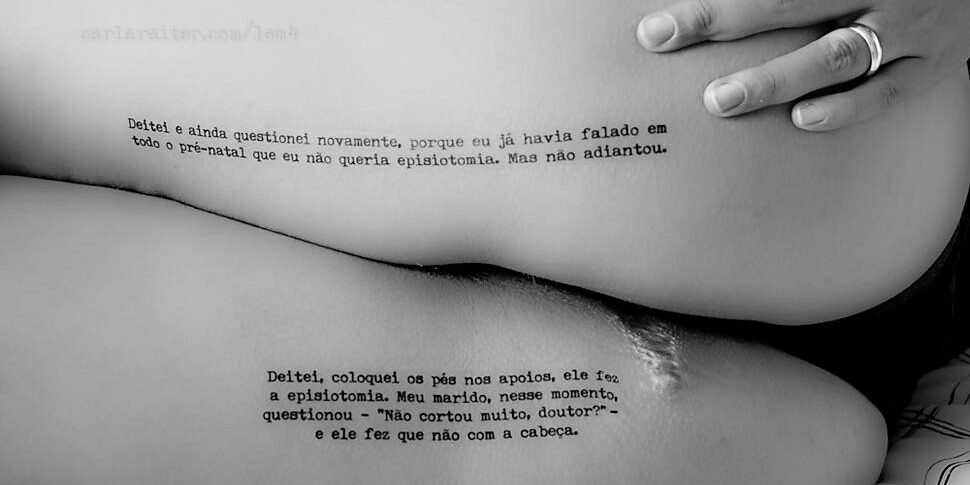 A bióloga Alinca Peres da Fonseca, 38, saiu da maternidade com uma fratura na costela. Durante o parto do filho caçula, ela foi submetida à manobra de Kristeller, prática que consiste em pressionar a barriga da gestante para empurrar o bebê. O mecanismo, contraindicado pela OMS e pelo Ministério da Saúde, pode comprometer a saúde da mãe e do bebê. No lugar da costela fraturada, Alinca tatuou a palavra “Renascimento”.